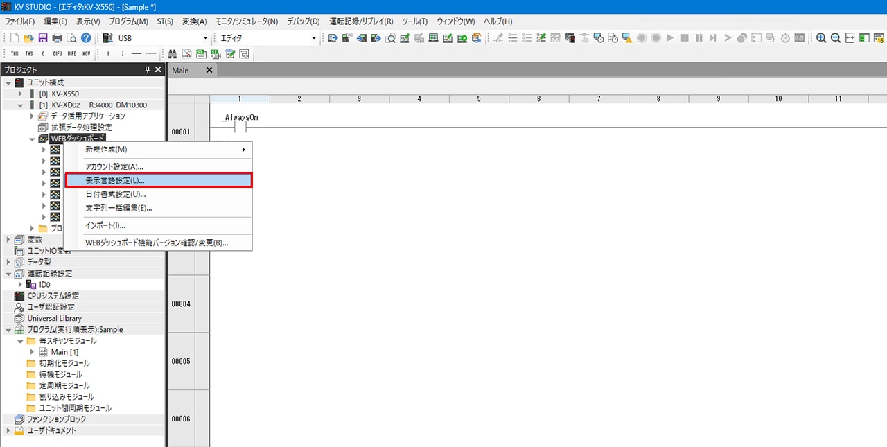 1. ワークスペース、「WEBダッシュボード」の右クリックメニューから「表示言語設定」を選択します。