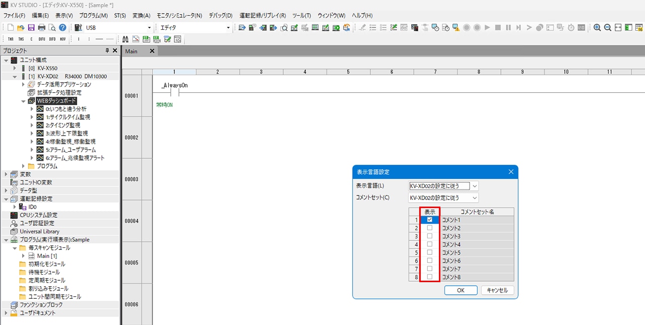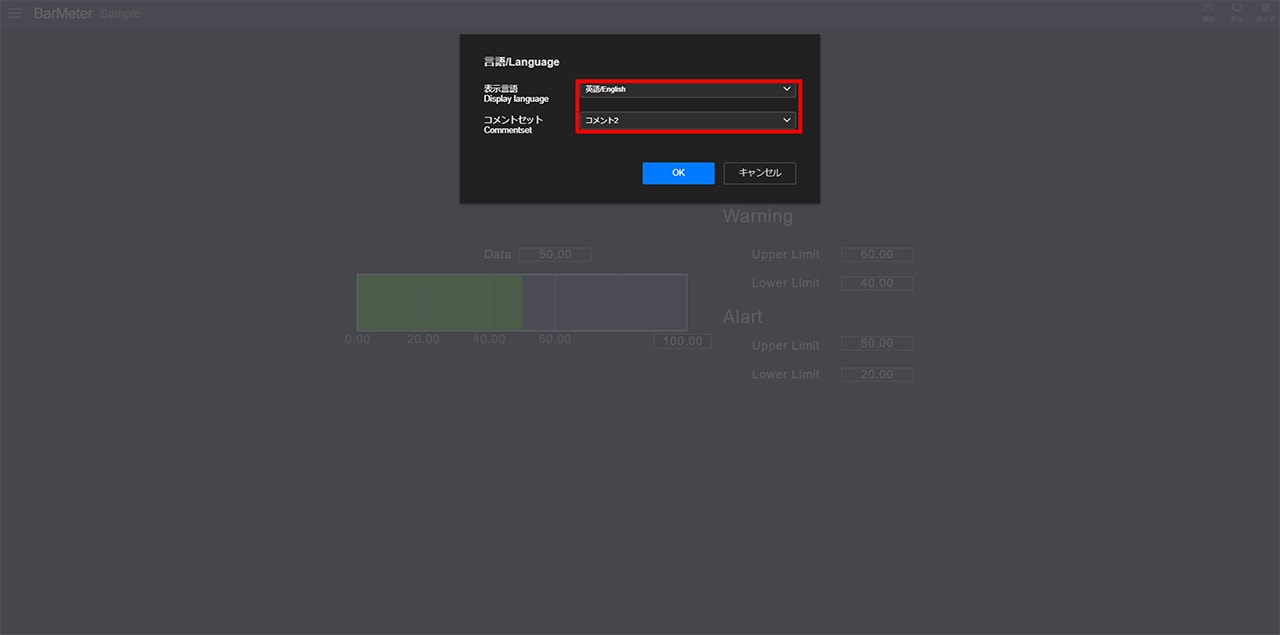 2. 言語切替に使用したい言語数分のコメントセットを「表示」に✔して、〔OK〕を選択します。