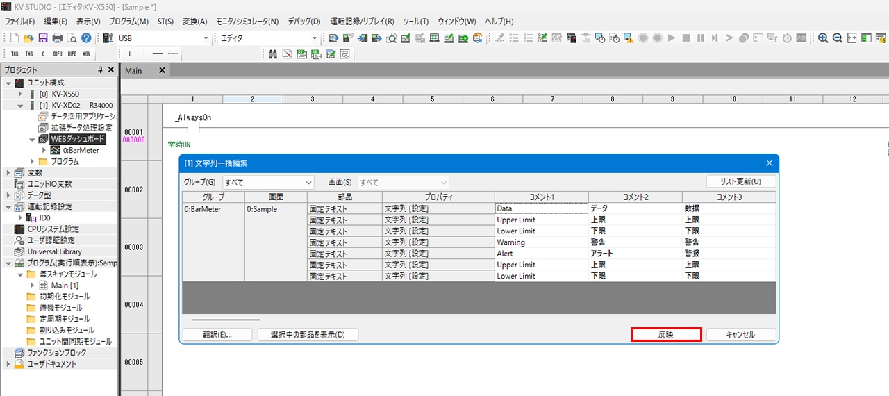 5. 〔反映〕を選択すると設定内容が登録されます。