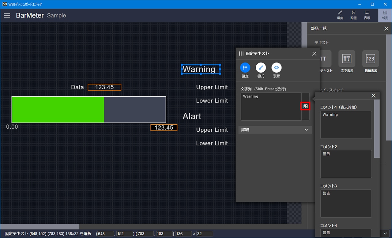 6. 部品ごとに設定したい場合は、各文字列設定の