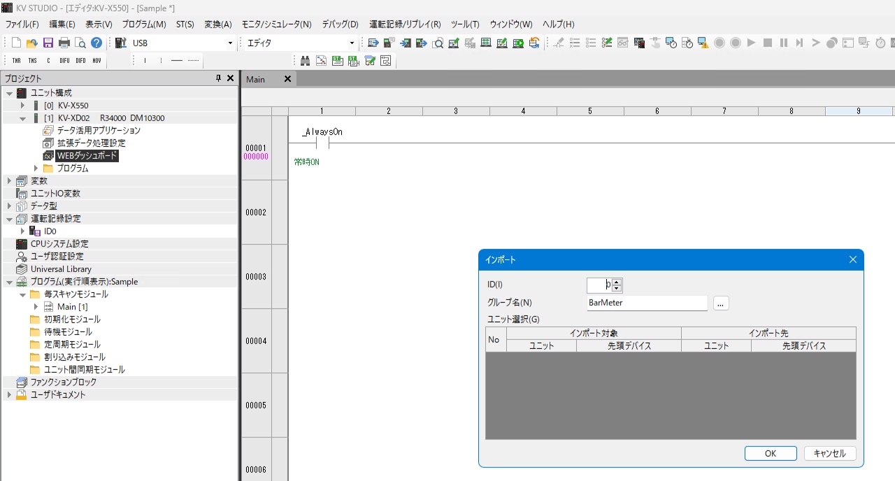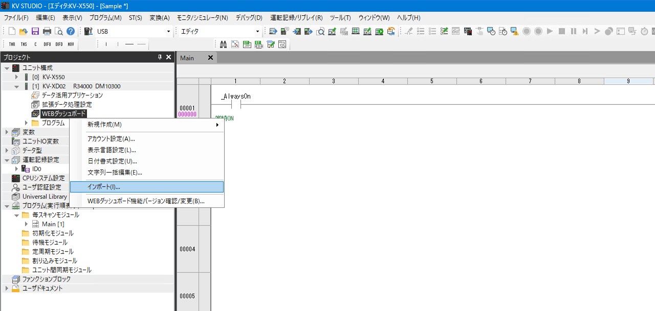 2. 流用先のプロジェクトのワークスペースにて、「WEBダッシュボード」の右クリックメニューから「インポート」を選択します。