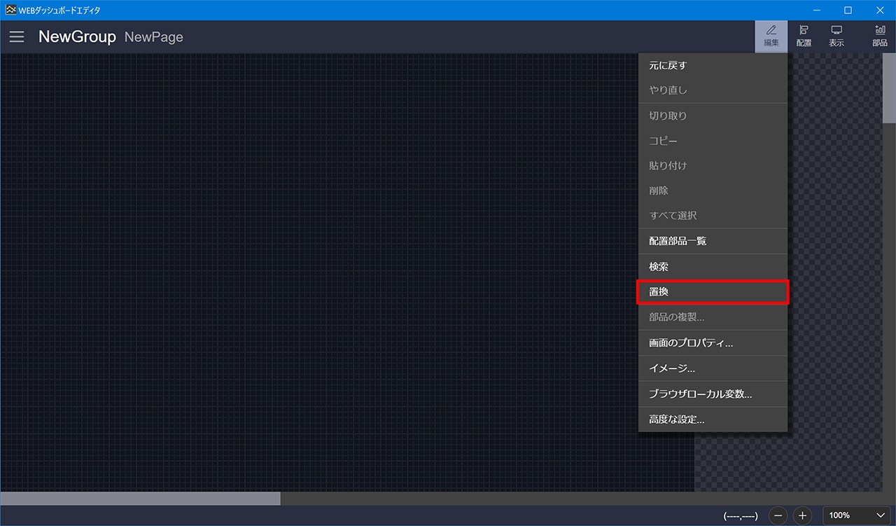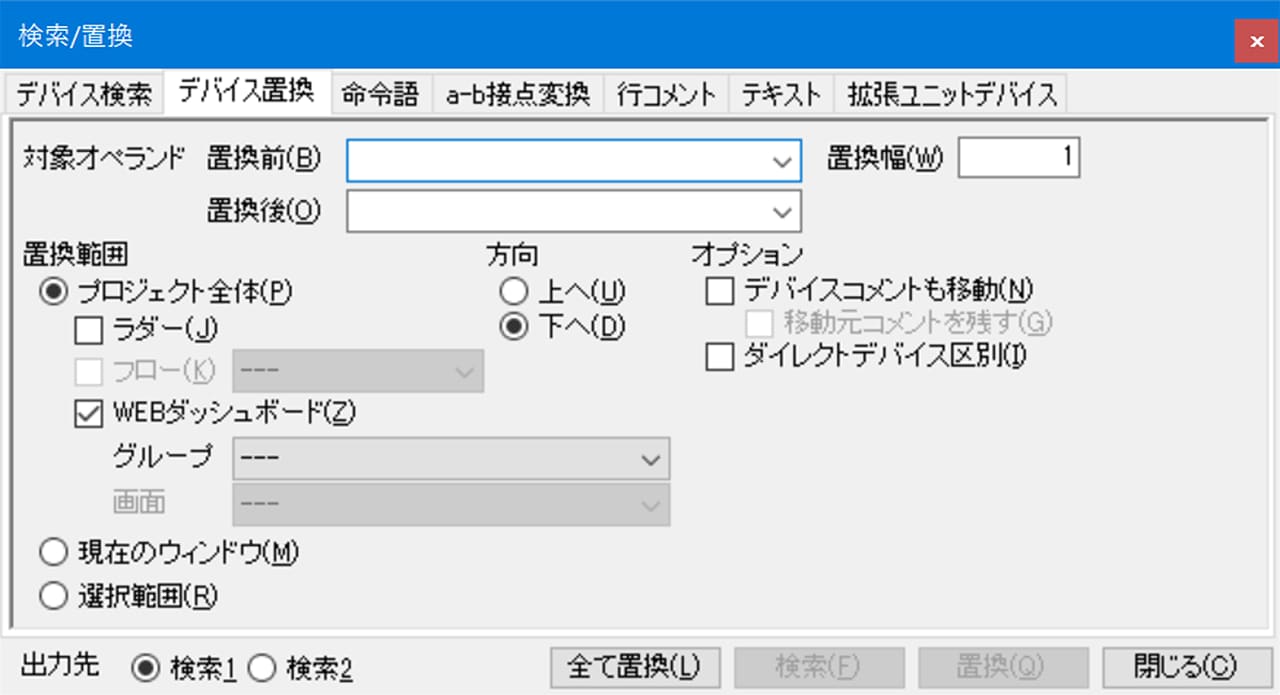 2. KV STUDIO操作時と同様の「検索/置換ダイアログ」が表示されるので、置き換えたい内容を入力して実行します。