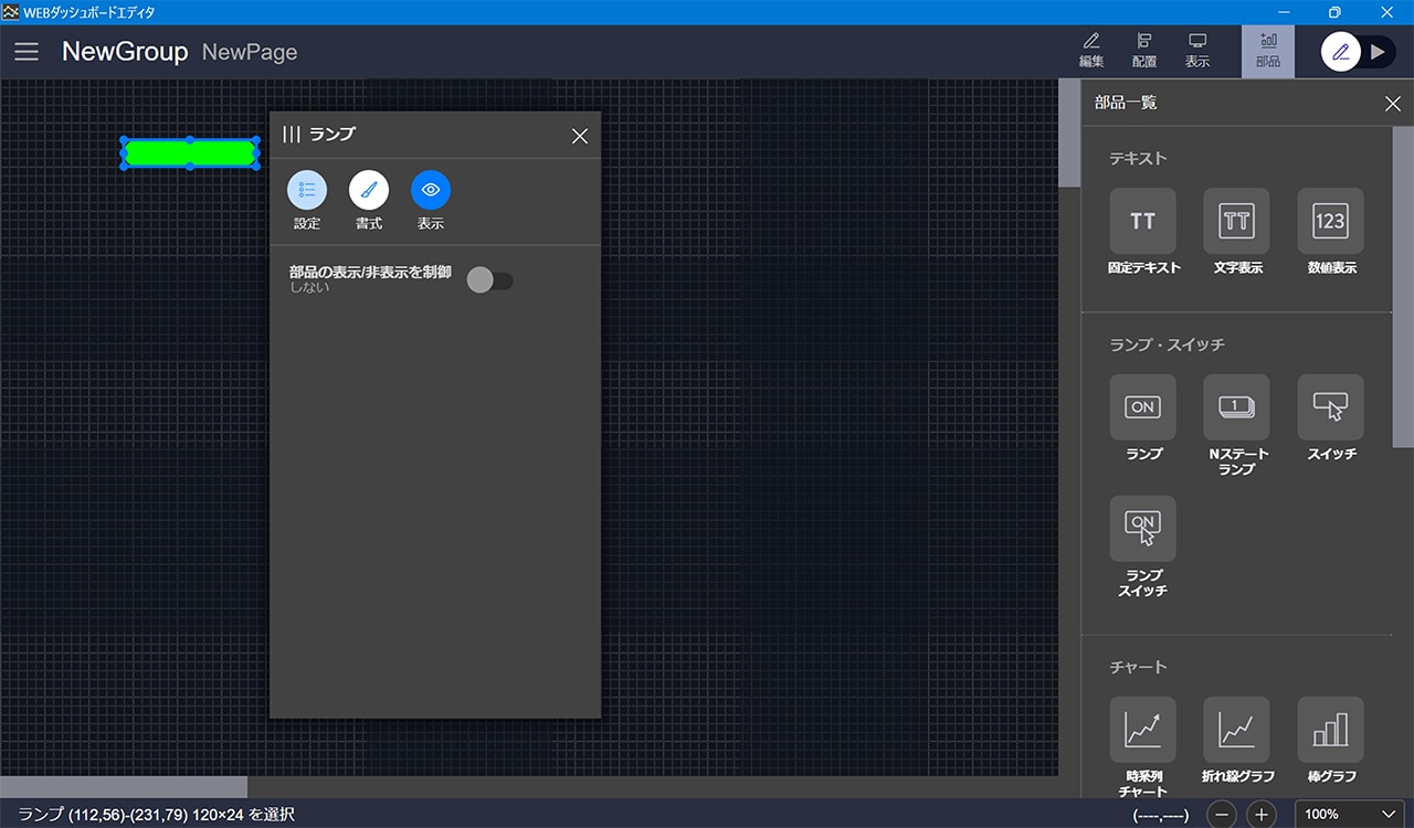部品の表示/非表示をプログラムから切り替える方法を説明します。
