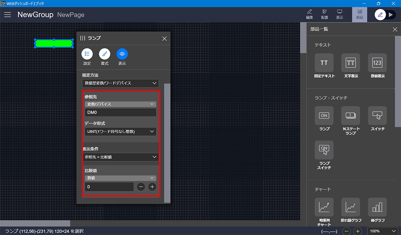 3. ビット情報のON/OFFのみではなく、ワード情報での表示条件指定もできます。