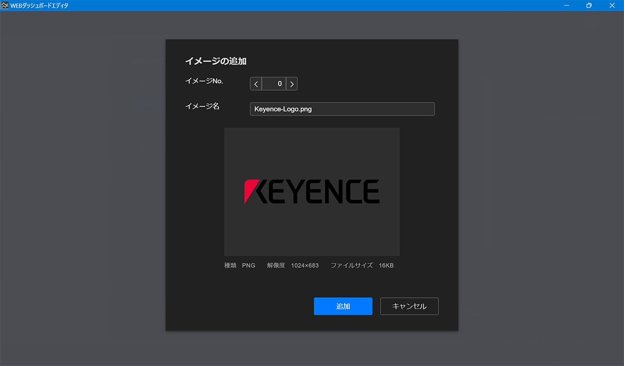 3. 任意の画像を選択後、「イメージNo.」と「イメージ名」を設定して、【追加】を選択します。