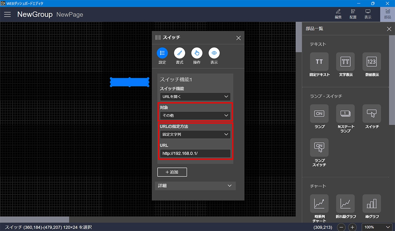 4. 同一ネットワーク内のKV-XD02以外のWEB画面を開きたい場合は、対象を「その他」に設定します。