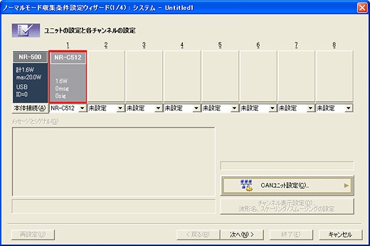 NR-C512のみ接続し計測する場合は、計測タブのユニットサンプリング周期でサンプリング周期を設定します。