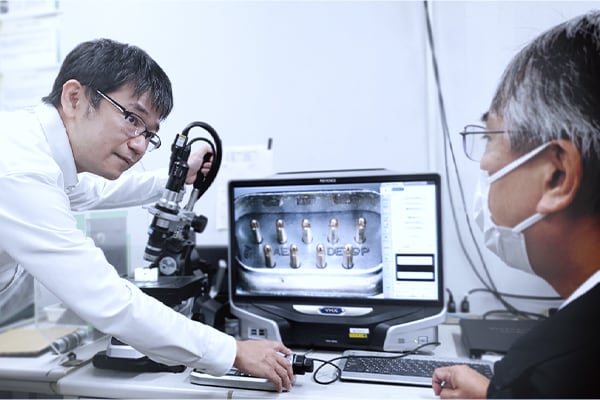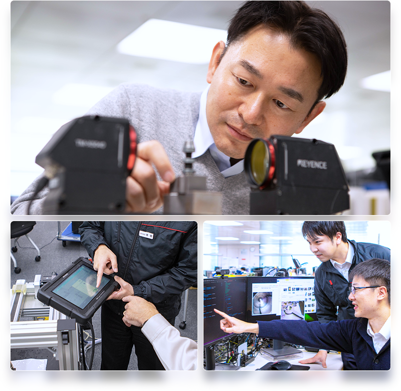 付加価値の高い商品を作るために、顧客の使用環境を知り、課題抽出を行います。販売部門からも情報収集しますが、顧客の工場へ訪問し、自分たちの目で実際の現場・現物を確認しています。これは顧客と直接つながっている直販体制が整ったキーエンスならではの強みであり、重要な情報収集源となります。