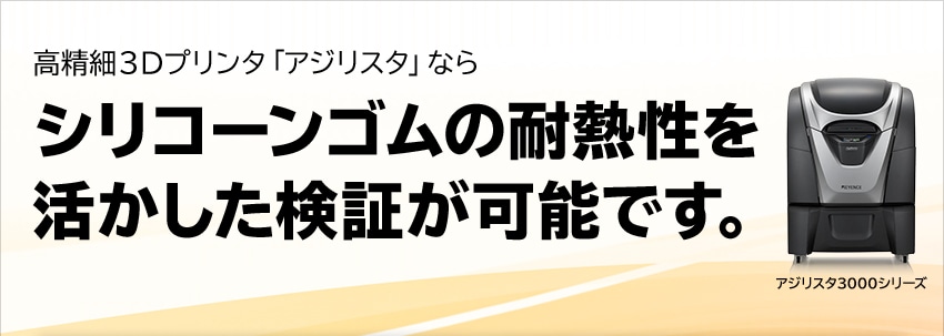 高精細3Dプリンタ「アジリスタ」ならシリコーンゴムの耐熱性を活かした検証が可能です。
