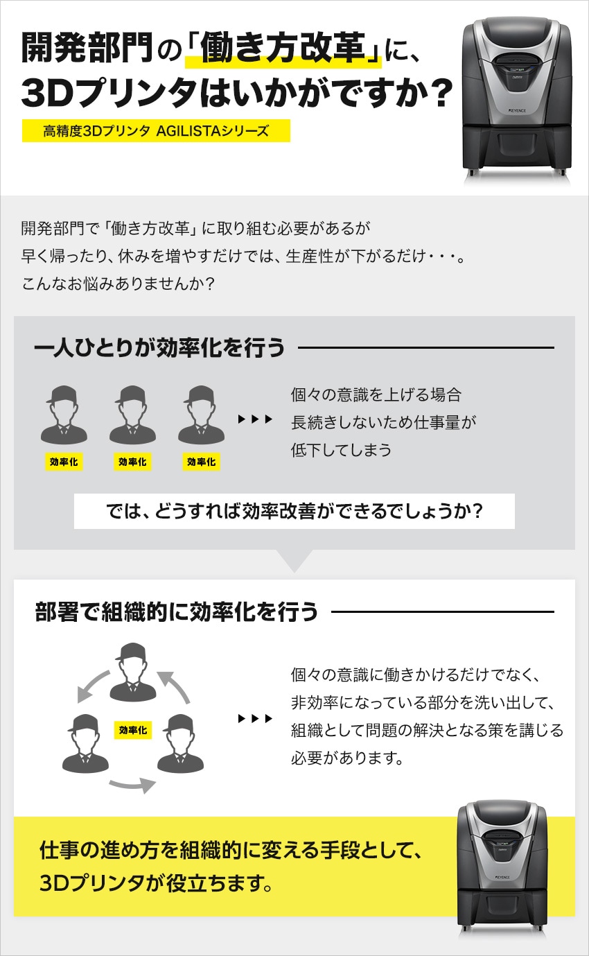 なぜ、3Dプリンタの導入が働き方改革につながるのかは資料をダウンロードしてご確認ください。