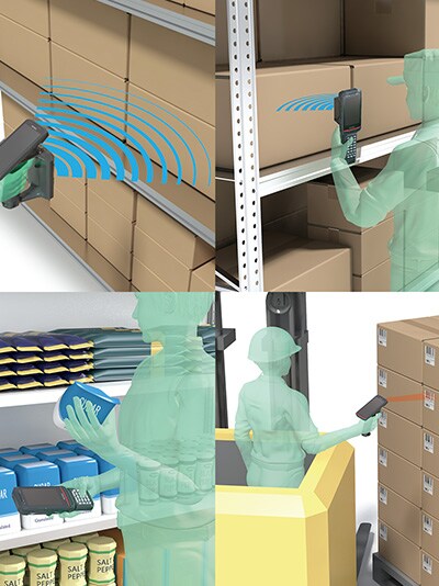 たとえば、通信範囲内であれば、段ボール内のRFタグの情報を読み書きしたり、財布の中に入った交通系ICカードをスキャンして支払いをおこなったりすることが可能です。これが従来のバーコードや二次元コードとの大きな違いです。