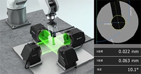 ロボットが繰り返し同じ位置に移動した際の停止精度や、動きの定量化が可能です。TM-X5000シリーズは投受光両方にテレセントリックレンズを搭載。光の平行性を極めたことで、高い安定性と精度を実現しています。