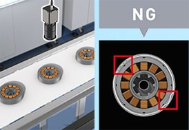 - シール材塗布検査、溶接後の高さ測定、モータコアの