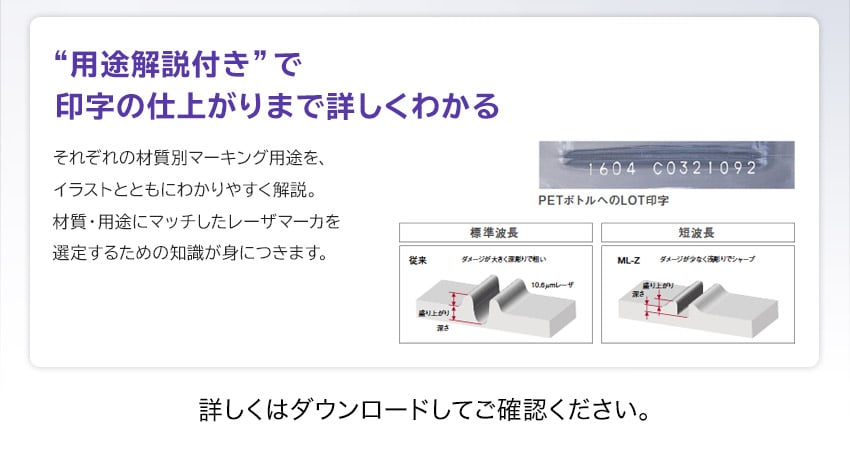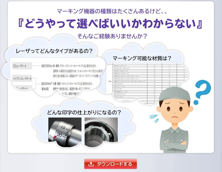 レーザマーカの種類ごとの特徴と選定知識が身につく レーザマーカ 材質別選定ガイド 今すぐダウンロードする ダウンロードする