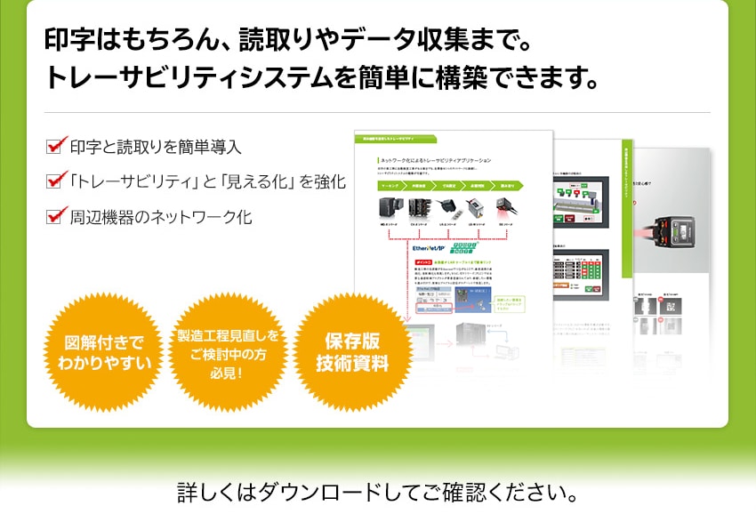 印字はもちろん、読取りやデータ収集まで。トレーサビリティシステムを簡単に構築できます。