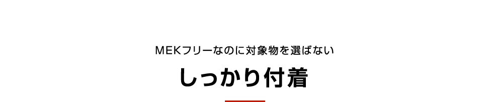 インク成分の見直しにより、これまでMEKフリーインクが苦手としていた対象物への印字が可能になりました。また、インク表面が擦れた場合でも、はがれたりかすれたりしにくくなっています。