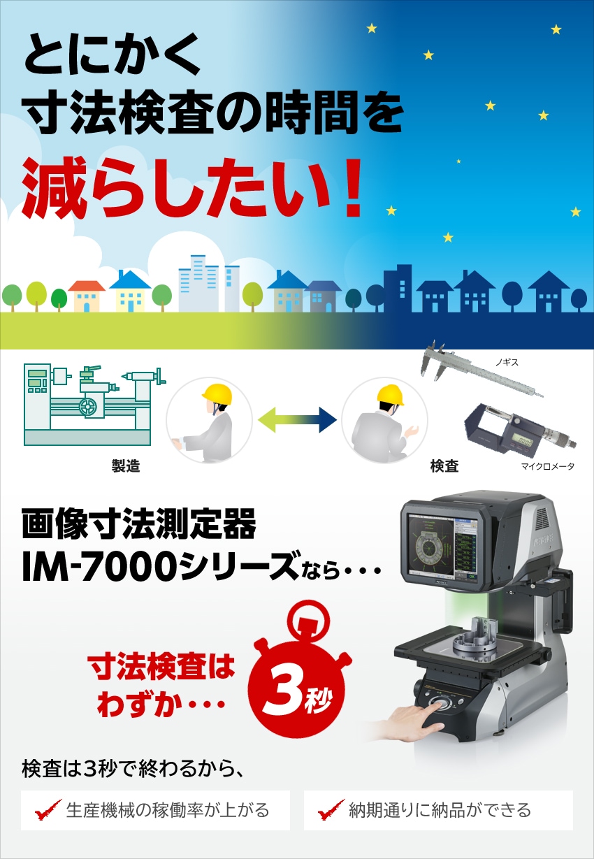 ぜひ、お問い合わせください!寸法測定は、「置いて、押すだけ」画像寸法測定器 IM-7000シリーズのカタログダウンロードテスト測定のご依頼は以下よりお申し込みください。