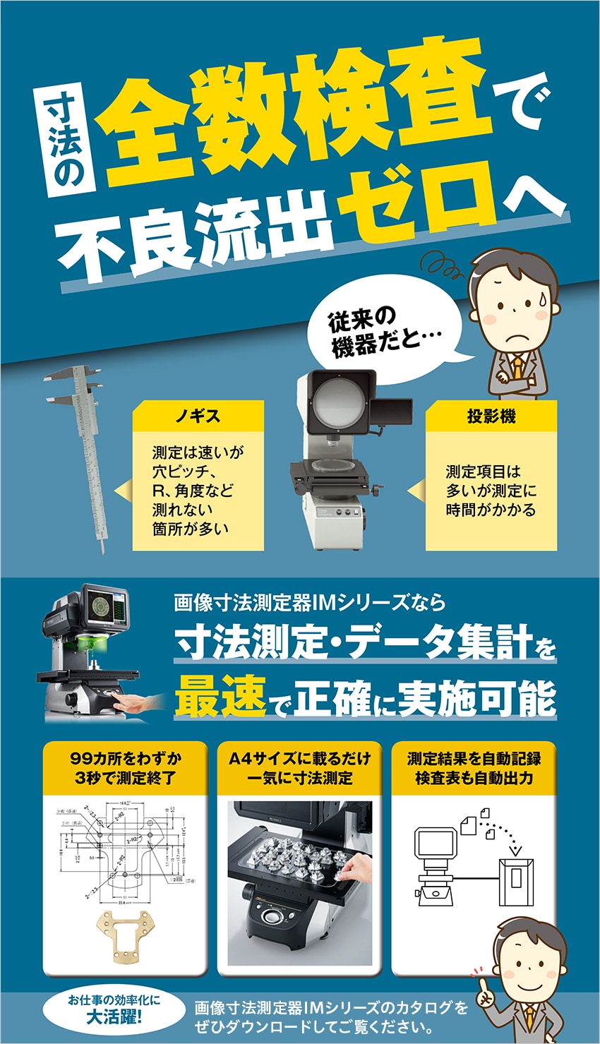 寸法の全数検査で不良流出ゼロへ、画像寸法測定器IMシリーズなら最速で正確に実施可能
