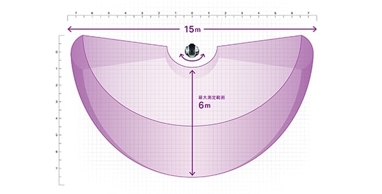 3つのカメラによる測定で、広域での高精度測定が可能。