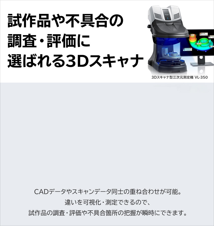 試作品や不具合の調査・評価に選ばれる3Dスキャナ 3Dスキャナ型三次元測定機 VL-350