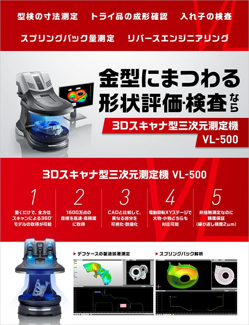 金型にまつわる形状評価・検査なら 3Dスキャナ型三次元測定機 VL-500