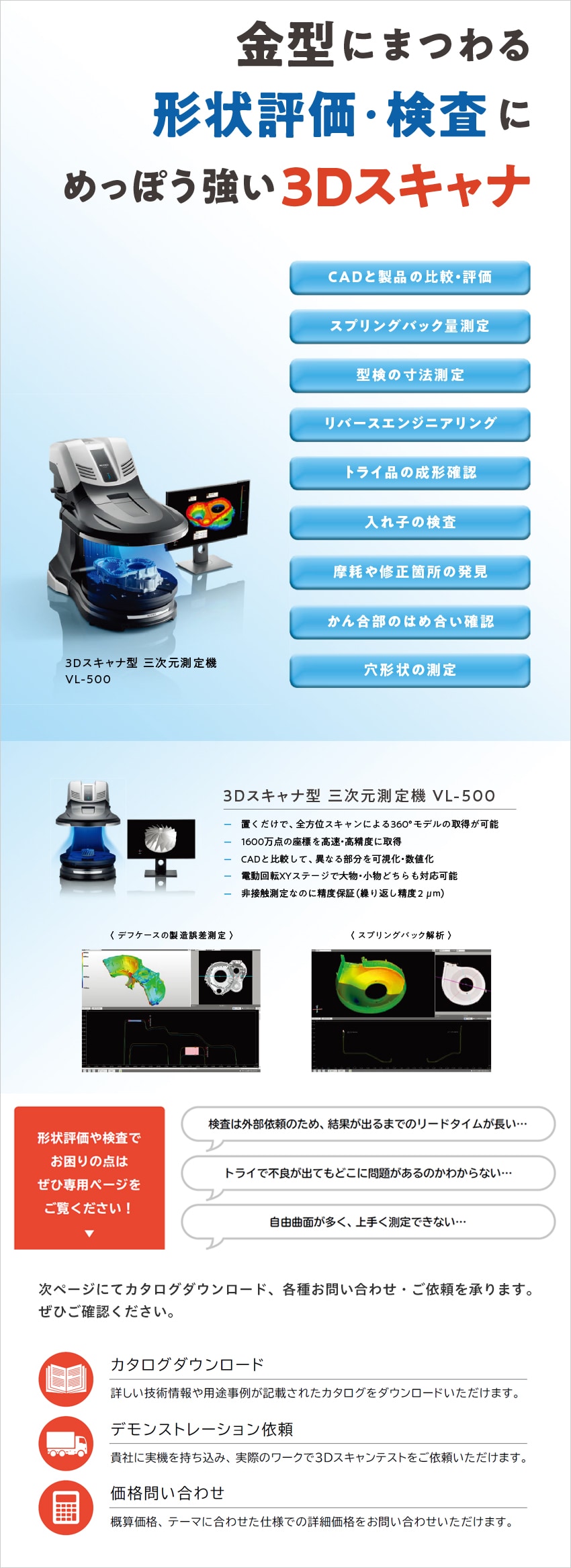 金型にまつわる形状評価・検査にめっぽう強い3Dスキャナ 3Dスキャナ型三次元測定機 VLシリーズ