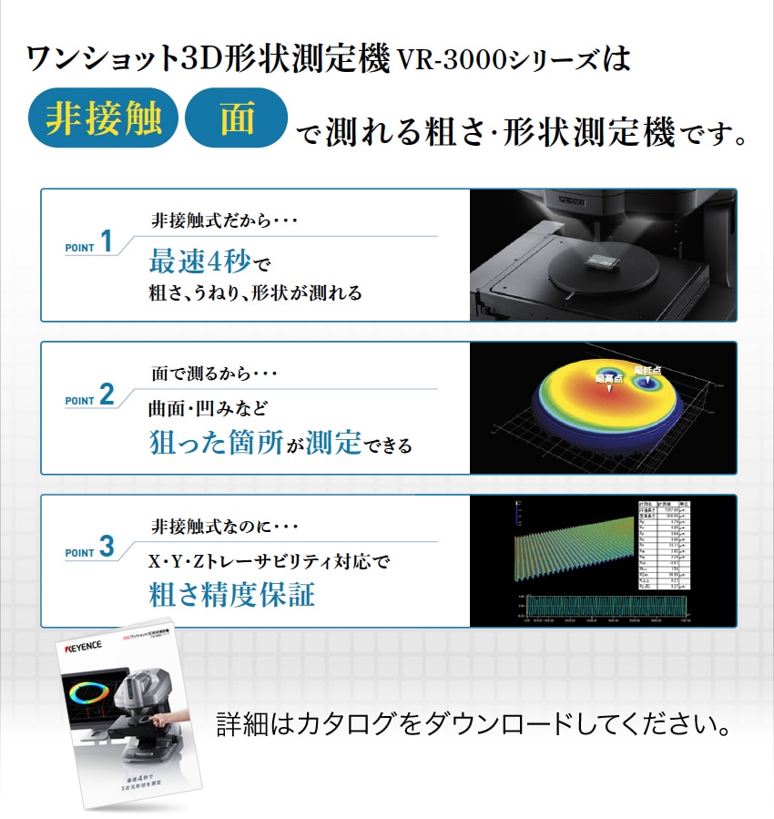 ワンショット3D形状測定機VR-3000シリーズは非接触 面で測れる粗さ・形状測定機です。