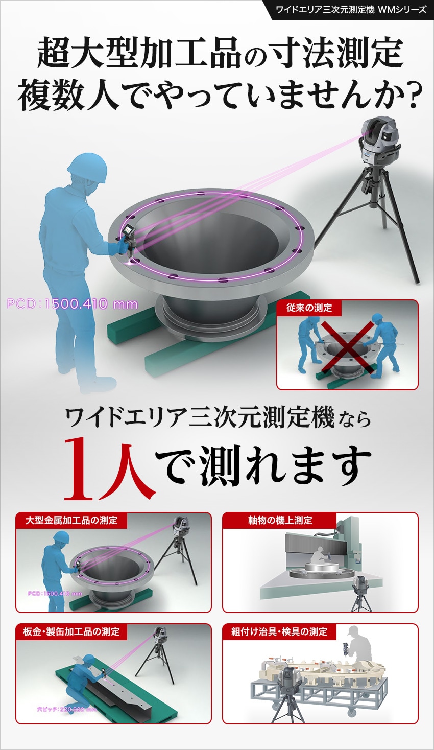 超大型加工品の寸法測定 複数人でやっていませんか?