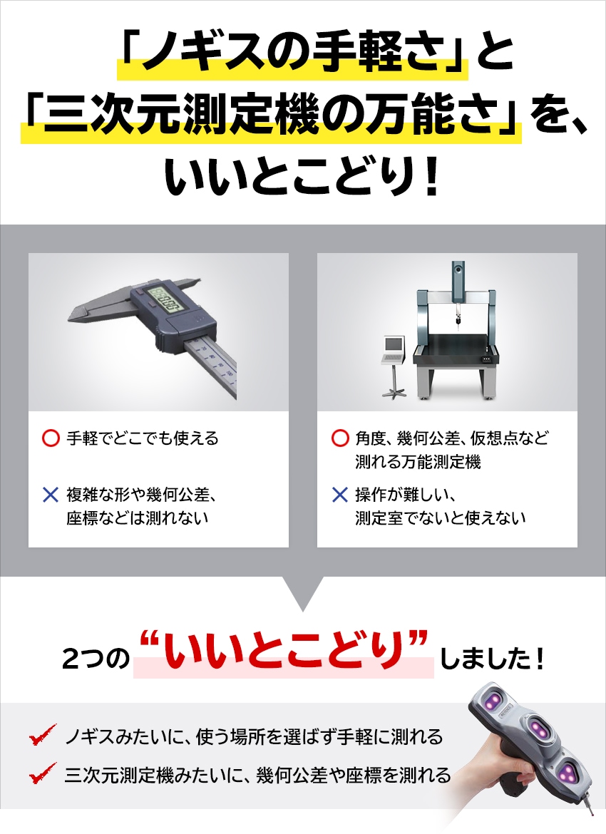 「ノギスの手軽さ」と「三次元測定機の万能さ」を、いいとこどり!
