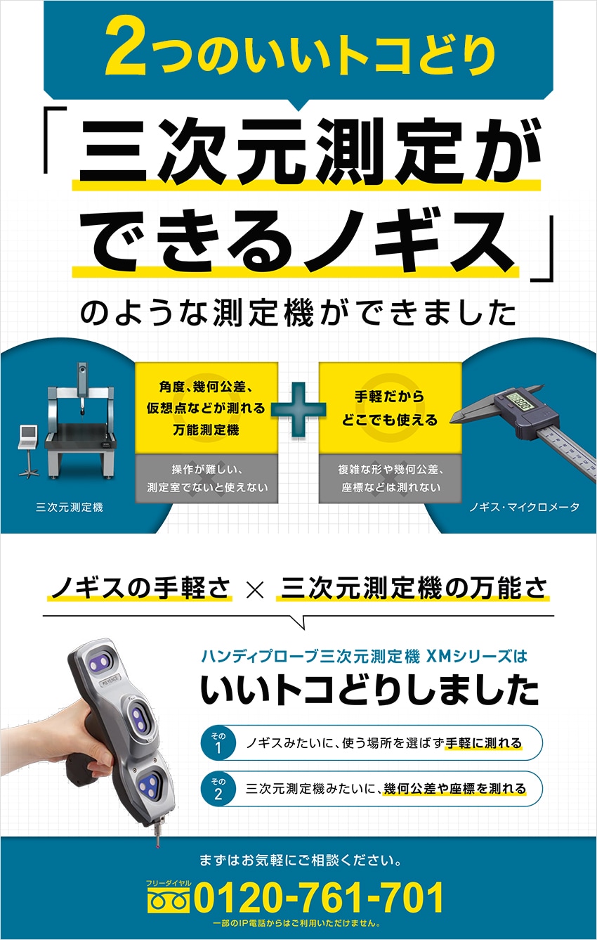 世の中になかった、新しい測定機のカテゴリ。ハンディプローブ三次元測定機XMシリーズのカタログをぜひダウンロードしてご覧ください。