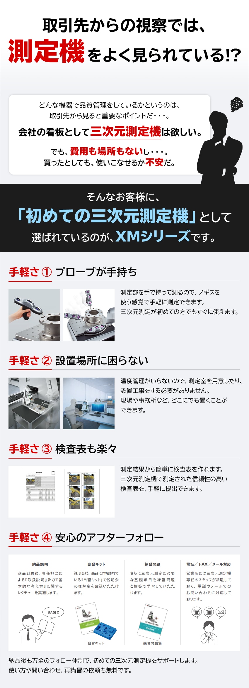 他にも驚きの機能が満載。最新版ハンディプローブ三次元測定機 XMシリーズのカタログを、ぜひダウンロードしてご覧ください。