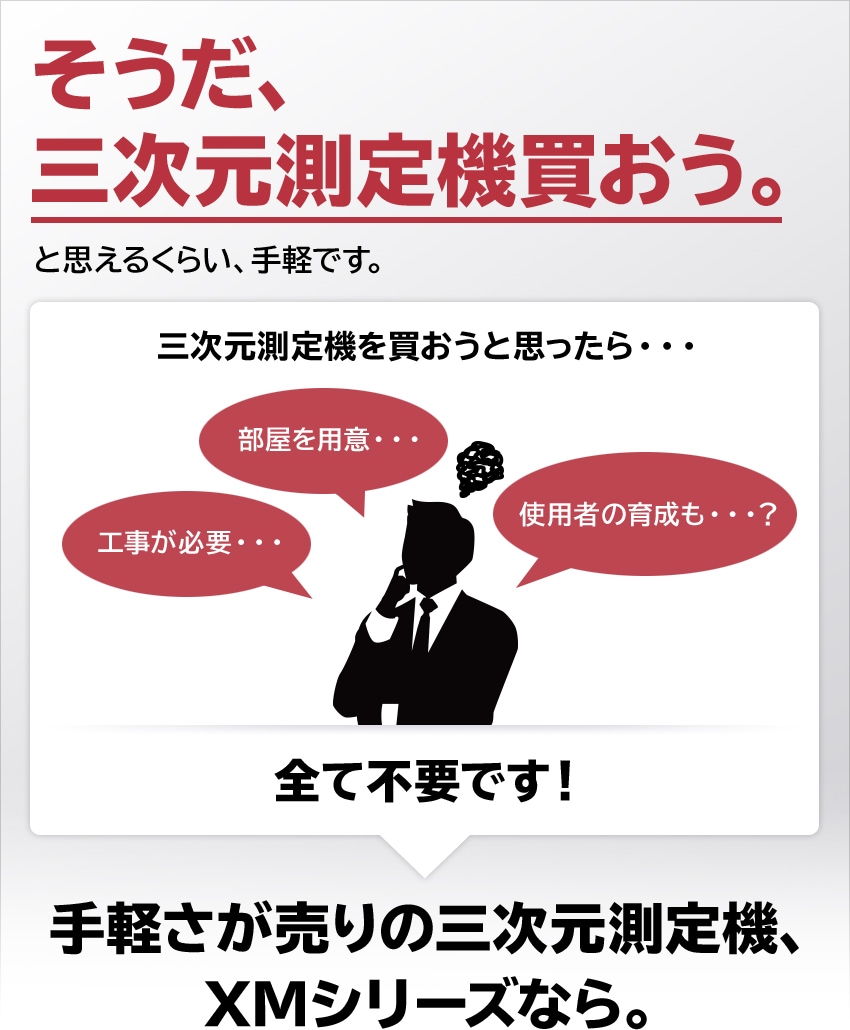 世の中になかった、新しい測定機のカテゴリ。ハンディプローブ三次元測定機XMシリーズのカタログをぜひダウンロードしてご覧ください。