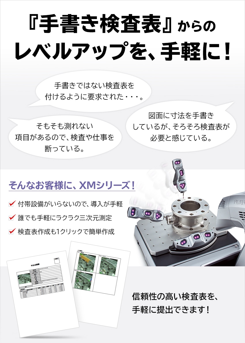 世の中になかった、新しい測定機のカテゴリ。ハンディプローブ三次元測定機XMシリーズのカタログをぜひダウンロードしてご覧ください。
