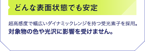 どんな表面状態でも安定 超高感度で幅広いダイナミックレンジを持つ受光素子を採用。対象物の色や光沢に影響を受けません。