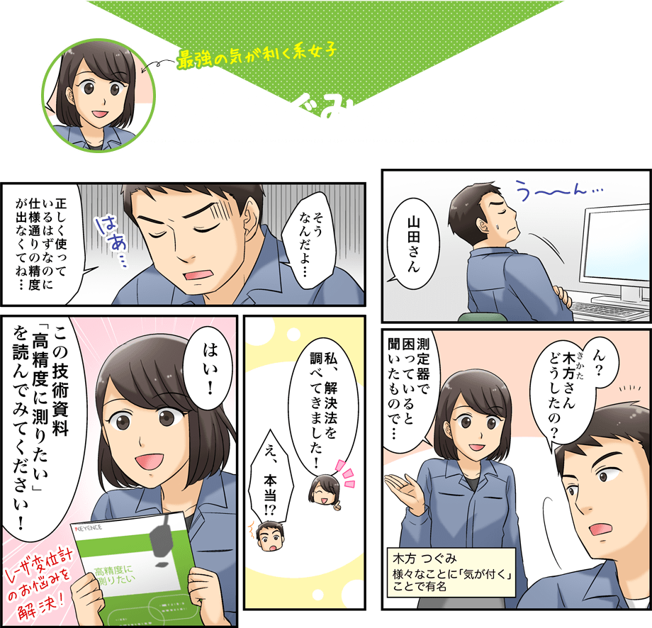 悩みの原因・解決法がわかる、測定にかかっていた手間が省けるようになる 数値のバラつきによるイライラを解消!作業効率が良くなり生産性UP! 職場の環境に合った測定器を選び直すきっかけになる