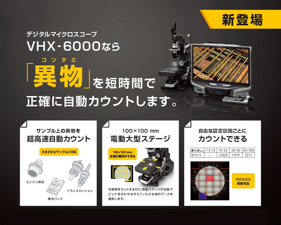 デジタルマイクロスコープVHX‐6000なら「異物」を短時間で正確に自動カウントします。