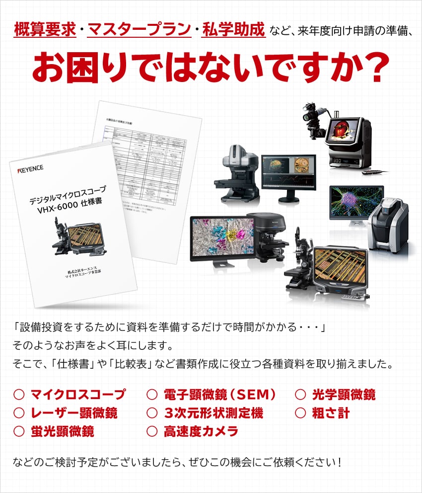 お申し込み後、最新顕微鏡・測定機のラインナップカタログをご覧いただけます。