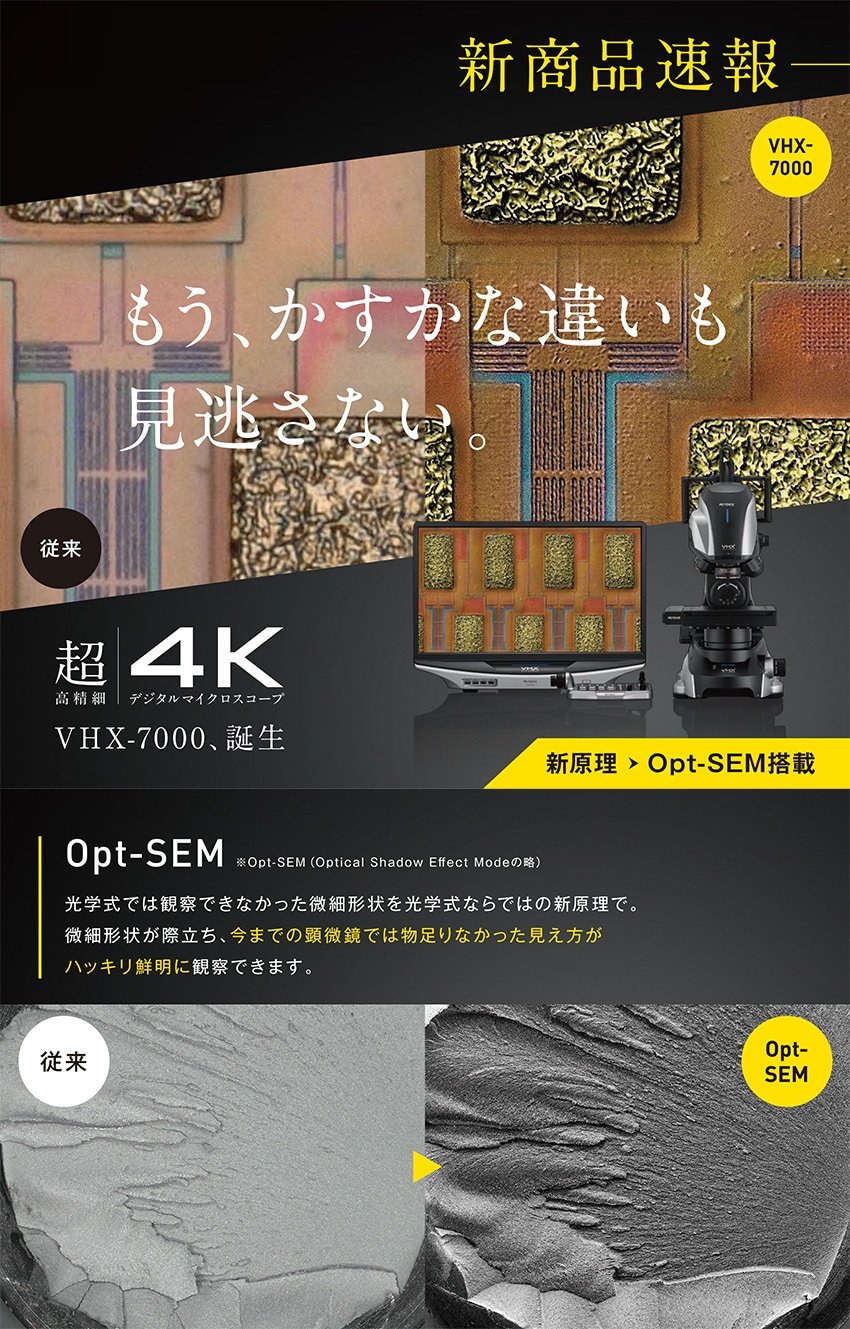 もう、かすかな違いも見逃さない。超高精細4Kデジタルマイクロスコープ VHX-7000、誕生。