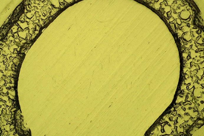 透明体やガラス越しの観察は、表面の映り込みによって、上手く観察できない場合があります。「透過照明を使用する」もしくは「偏光照明で映り込みをカットする」ことで綺麗に観察できます。