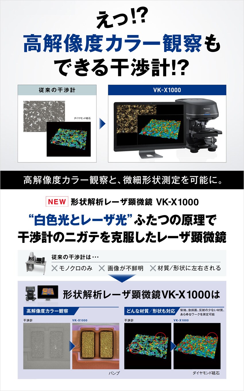 えっ!?高解像度カラー観察もできる干渉計!?[NEW]形状解析レーザ顕微鏡 VK-X1000