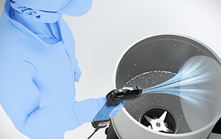 ジェットエンジン技術にも利用されるラバールノズル構造を採用し、超音速エアを実現。また、超高速エアにイオンを組み合わせることで、異物除去だけでなく再付着も防止可能です。