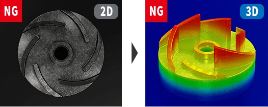 2D画像だけだと見分けにくかった高さの違いが、3D画像を組み合わせることで判断しやすくなります。