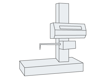 ステージ上の対象物に接触子を当て、三次元の座標を取得し、対象物の寸法・位置関係・輪郭形状・幾何公差などを測定できる測定機です。最も高精度に測定できますが、設置には基準温度に設定した測定室が必要で、操作には高い知識と熟練が必要です。