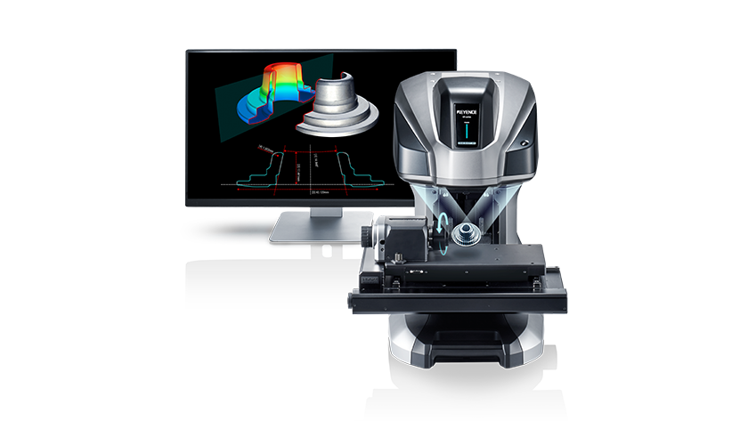 ワンショット3D形状測定機「VR-6000シリーズ」は、粗さ計・輪郭形状測定機の計測をそのまま非接触で実現。触針式では測りきれない面全体の形状を0.1µmの分解能で捉える3次元形状測定機です。さらに電動回転ユニットを新たに搭載。サンプルを回転させながら測定をおこなうことで、死角をなくしてありのままの断面形状を再現することができます。今までは切断しなければ正確に測ることができなかった部分の肉厚や奥まった寸法が簡単に測れます。また、HDRスキャンアルゴリズムによりスキャン能力が進化したことで、光学式の形状測定機が苦手だった光沢がある対象物や光の反射が弱い素材の対象物も瞬時に最適な条件を判断し、正確に形状を測定することが可能です。従来比で最大1000倍までダイナミックレンジを広げたスキャンが可能になりました。