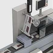 産業用インクジェットプリンタ(IJP)は、プリントヘッドが小型で向きを選ばずに使用できるので省スペースに設置できます。導入済みの包装機や充填機に後から設置してお使いいただけます。