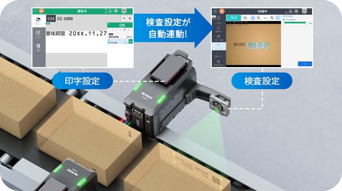 マルチセンシングユニットとは、段ボール印字工程に求められるあらゆるセンシング機能を1つのユニットに搭載した多機能センサです。特に、非接触エンコーダ機能によって段ボールの搬送速度の加減速を補正した安定印字を実現します。
