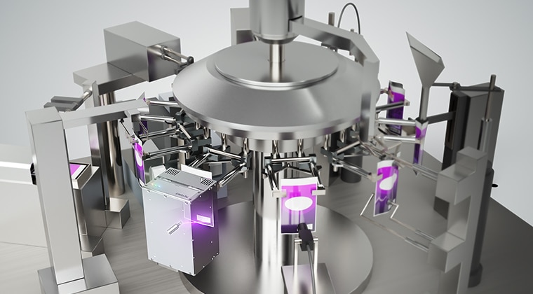 油・粉など印字の前工程、アルコール・熱殺菌など印字の後工程など、従来のインク方式ではさまざまな原因で印字不良が生じるリスクがありました。UVレーザはフィルム表面の状態に左右されることなく“消えない印字”が可能です。