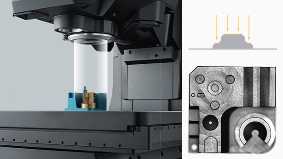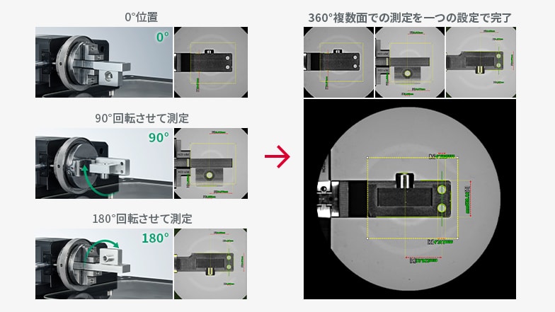 多方向から加工された製品に対しても、回転方向のすべての面が一度に測定できるようになります。