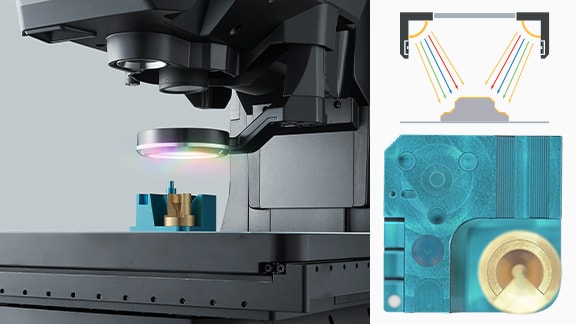 新搭載のカラー照明を含む可変照明ユニットで、対象物のエッジを際立たせる最適な照明条件を設定できます。一度設定すれば、連続測定の際には、自動的に同じ照明条件を再現します。