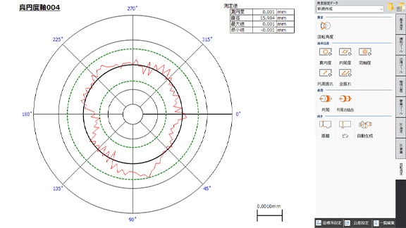 真円度や同軸度、振れなどといった、従来は専用機が必要だった項目も簡単に測定が可能。視野内の情報をフルに使って測定するため、接触式の測定器と比べて、より自由度の高い安定した測定ができます。